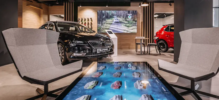 V novém autosalonu se můžete těšit na nové digitální prvky. Například na dotykový stůl, TV dotykovou obrazovku, stěnu na konfigurátor vozu a digitální stojany k autům. Nový bude i nábytek včetně židlí, křesílek a poufů. Nezapomínáme ani na děti, kterým koupíme nové Škoda Auto odrážedla a hračky. Do zákaznických prostorů naistalujeme výdejník barelové vody a kávovar.